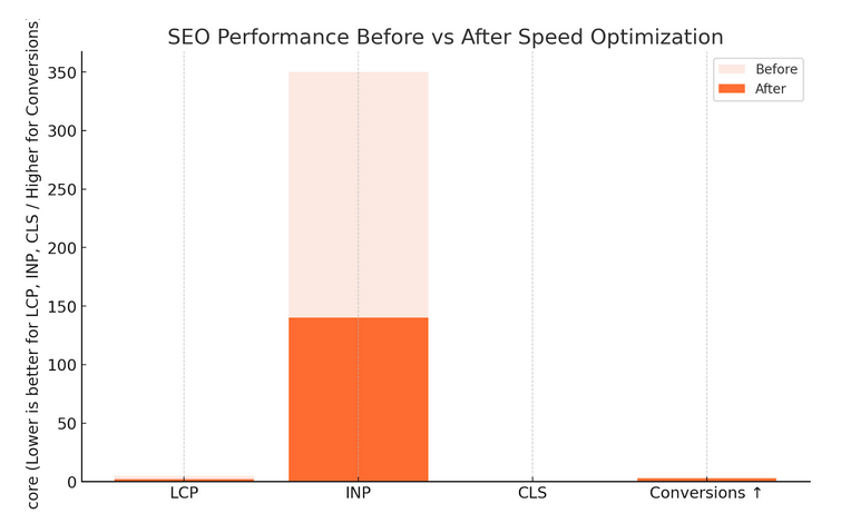 Search rankings today are heavily influenced by Core Web Vitals, which measure real user experience, not just SEO best practices. Site speed now determines: